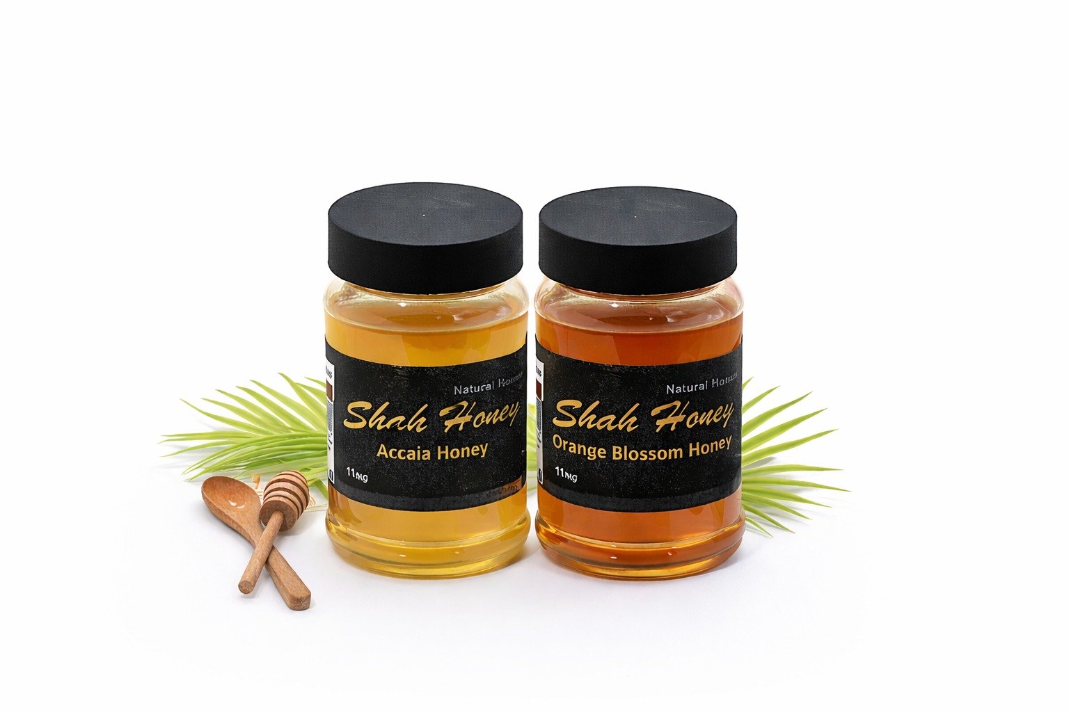 Experience the richness of nature with our exclusive honey bundle featuring 1kg Acacia Honey and 1kg Orange Blossom Honey – a perfect combination of purity, taste, and health.